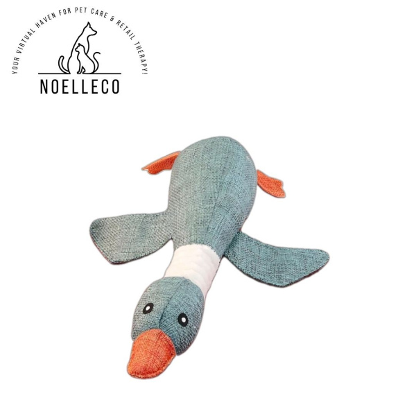 Stuffed burlap goose toy. This plush toy is perfect for snuggling, while the built-in squeaker adds extra excitement during playtime. Lightweight and gentle on your dog’s teeth, it's perfect for fetch, tug-of-war, or just a quiet nap.