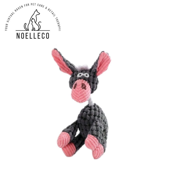 Durable soft material toy donkey with rope neck. It's the ultimate cuddle buddy for your pup! Made from soft, high-quality fabric, this plush toy is perfect for snuggling, while the built-in squeaker adds extra excitement during playtime. Lightweight and gentle on your dog’s teeth, it's perfect for fetch, tug-of-war, or just a quiet nap.