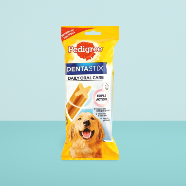Pedigree Dentastix are scientifically proven dental chews designed to support your dog’s oral health. With a unique X-shape and abrasive texture, Dentastix help reduce plaque and tartar build-up when used daily, promoting healthier teeth and gums.