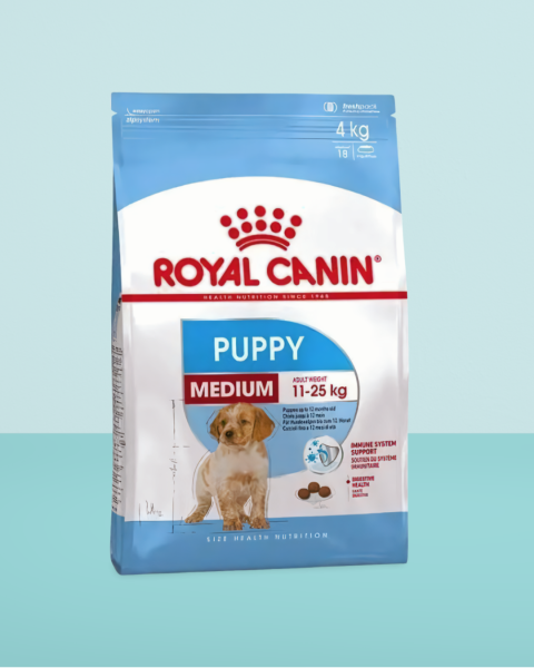 Royal Canin’s Medium Puppy is specially formulated for medium breed dogs weighing between 11 and 25 kg. These active, energetic dogs need balanced nutrition to maintain a healthy weight, support strong muscles, and promote overall vitality.