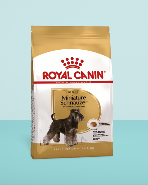 Royal Canin’s Miniature Schnauzer Adult food is specially crafted to meet the needs of this spirited, intelligent breed. The formula helps maintain their ideal weight, supports urinary tract health, and keeps their distinctive coat shiny and healthy. With a kibble shape made for their small jaws and a flavour they love, it’s tailored nutrition to keep your Schnauzer looking and feeling their best.